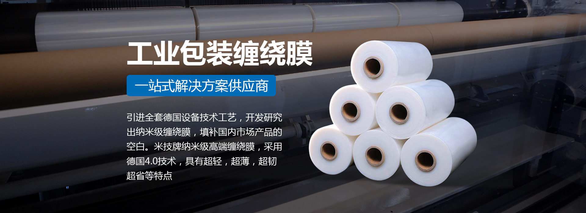 引進(jìn)全套德國設(shè)備技術(shù)工藝,開發(fā)研究出納米級(jí)纏繞膜,填補(bǔ)國內(nèi)市場產(chǎn)品的空白。米技牌納米級(jí)高端纏繞膜,采用德國4.0技術(shù),具有超輕,超薄,超韌,超省等特點(diǎn)。